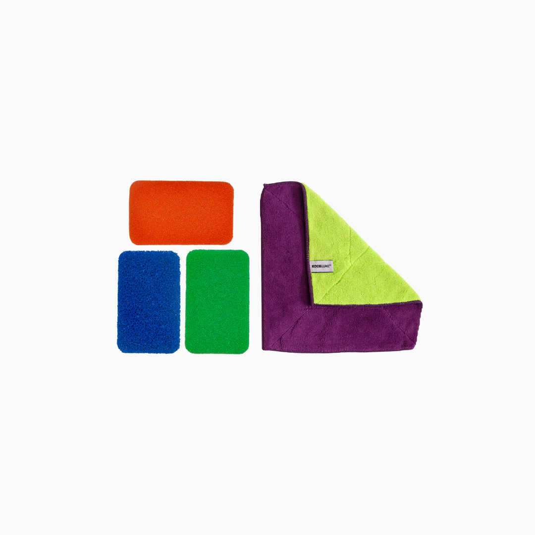 Kit nettoyage de 3 éponges multi-surfaces en mousse de Silicone et 1 chiffon Microfibre de Cookjeny