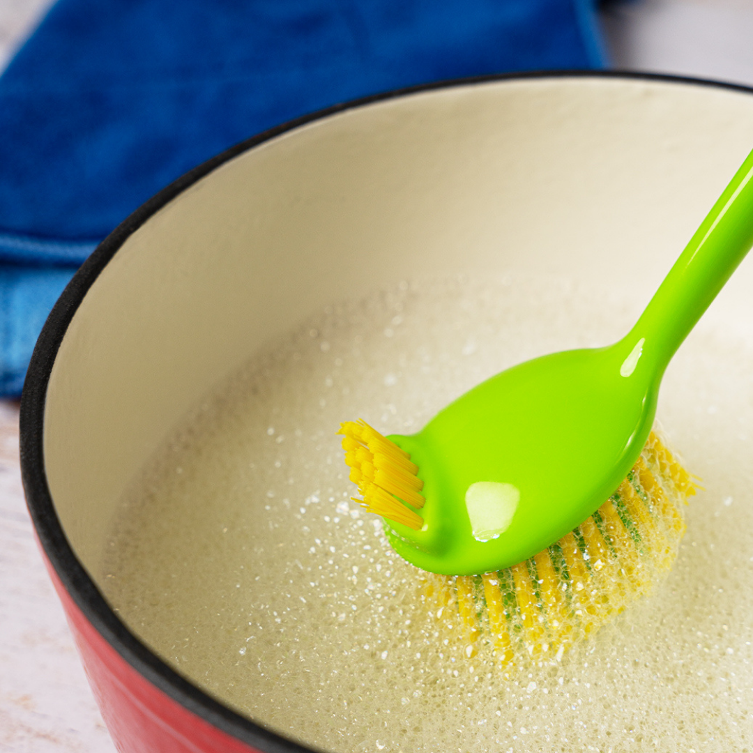 Cette brosse à vaisselle nylon CookJeny vous dispense de plonger vos mains dans l’eau pour nettoyer et récurer la vaisselle sale. Son efficacité réside dans sa capacité à éliminer les résidus tenaces sans effort excessif, tout en préservant la propreté de vos mains.