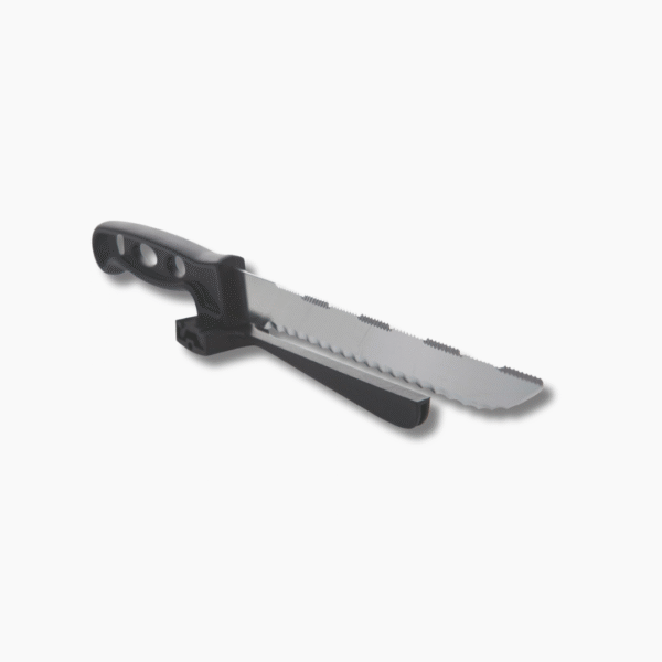 Ce couteau de cuisine à double lame de 20 cm permet de couper une grande variété d’aliments ; idéal pour couper le pain sans émietter, la charcuterie, les viandes et les légumes. D’autre part, l’une des lames dispose de dentelures à longueurs alternées pour couper la viande ou le poisson directement du congélateur. De plus, son manche ergonomique en plastique noir résistant vous offre un guide réglable pour assurer des coupes uniformes d’épaisseur allant de 1,5 mm à 15,5 mm.