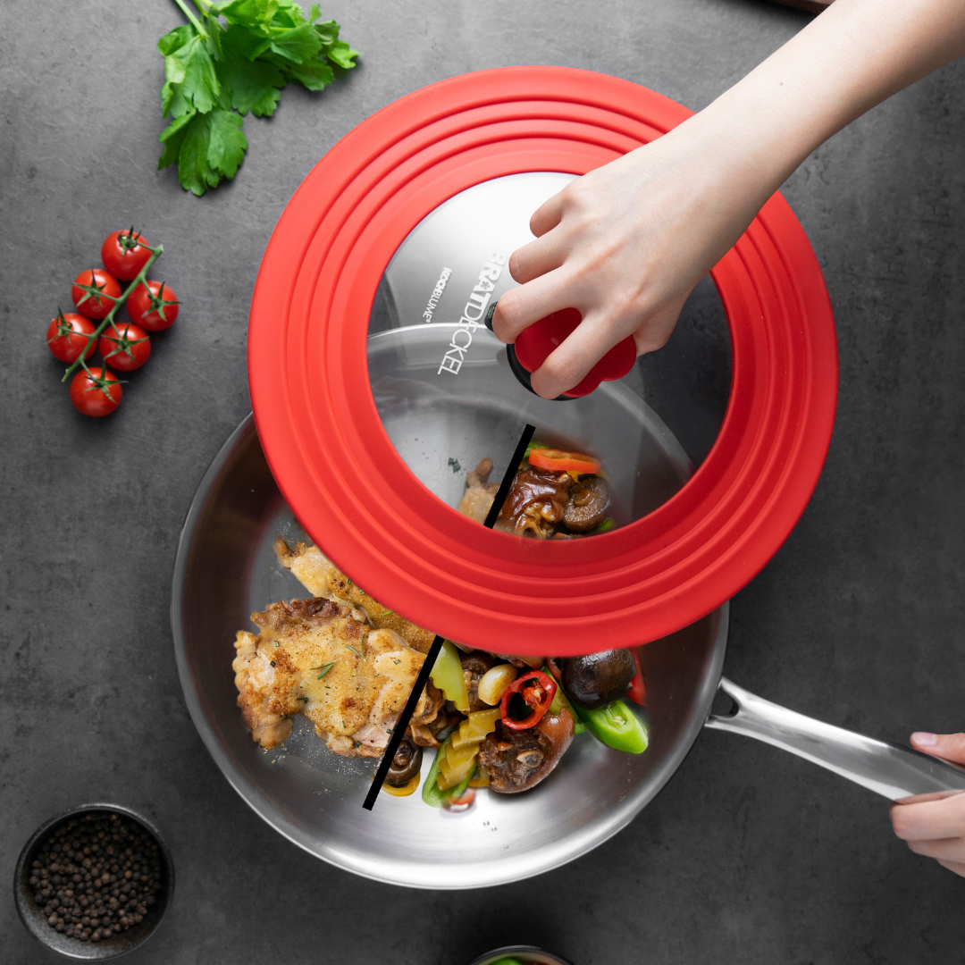 Optez pour ce couvercle antiprojections universel pour une cuisson économe en énergie et pour préserver les vitamines de vos aliments.