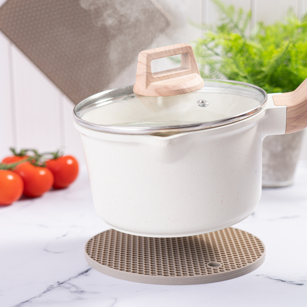 Dessous de plat ou Manique ? Nous avons eu l’illumination en fusionnant les deux en un. En un tour de main, non seulement vous protégez vos mains des températures enflammées, mais aussi vos précieuses surfaces domestiques. Grâce à sa texture gaufrée, même les casseroles les plus agitées ne dévieront pas de leur chemin, résistant vaillamment à des températures pouvant atteindre les 260 °C. Laissez-le se métamorphoser en dessous de plat pour abriter vos casseroles brûlantes avec élégance et sécurité.