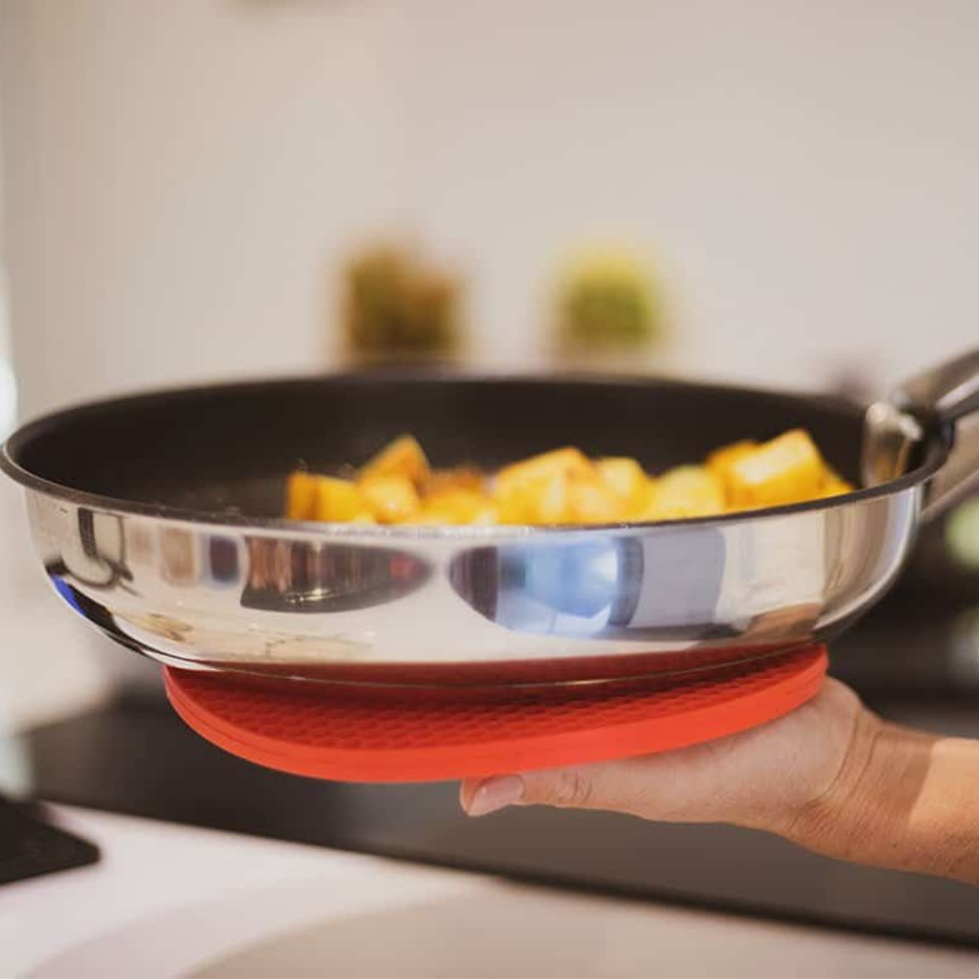 La lot de 2 maniques et dessous de plat rond en silicone de Kochblume est antidérapant. Permet de transporter et de poser les récipients brûlants, en toute sécurité. La manique et dessous de plat rond, effectue parfaitement les deux fonctions. Utilisez-la comme dessous de plat pour poser des récipients chauds. Vous pouvez aussi l’utiliser comme une manique, souple, pour tenir n’importe quel récipient en toute sécurité. (Silicone 100% de qualité alimentaire, sans BPA).