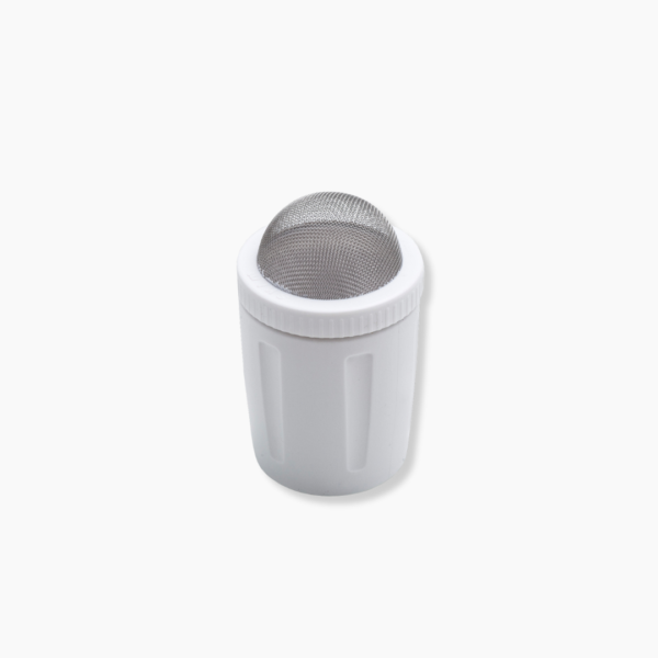 La grille en acier inoxydable de 25 mailles carrées située au sommet du saupoudreur vous permet de répartir la quantité exacte de matériau souhaitée avec précision. Elle tamise également le matériau en même temps, garantissant une distribution uniforme.