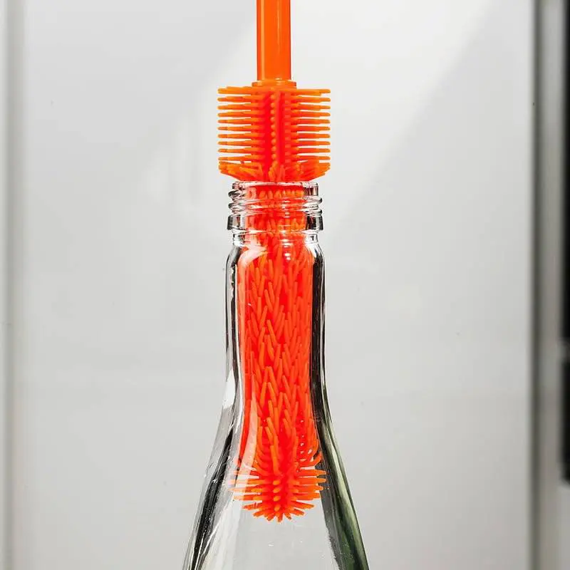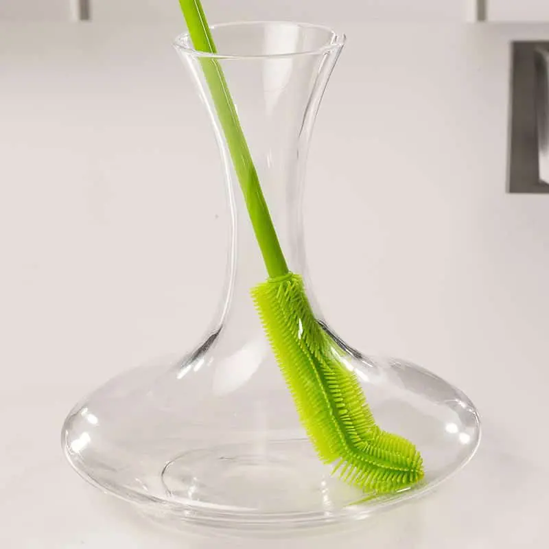 Le goupillon SLIM en silicone et antibactérien de Kochblume, remplace les éponges classiques. Il un nettoyage plus efficace et hygiénique des bouteilles, biberons, tétines, vases, verres, tubes, récipients etc. En effet, son extrémité flexible, permet d’atteindre tous les coins des espaces difficiles à atteindre (par ex. bouteilles à vin, champagne, tétines etc.) afin de les nettoyer correctement en éliminant les résidus et les germes. Le goupillon SLIM en silicone de Kochblume est idéal pour des bouteilles d’ouverture de diamètre à partir de 16 cm.