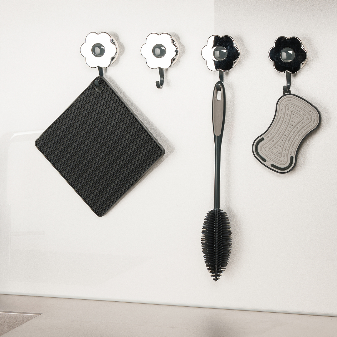 Que ce soit pour ranger vos accessoires de cuisine ou pour organiser votre espace salle de bain, la ventouse crochet Flower Power L de Kochblume se révèle être un outil pratique et fiable qui s’adapte à votre style de vie.